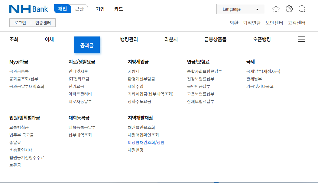 농협 홈페이지로 접속하시면 공과금 메뉴를 보시면 지역개발채권에서 '미상환재권조회/상환' 이라는 메뉴를 보실 수 있어요. 여기로 들어가시면 본인인증을 통한 로그인을 먼저 해주셔야 하는데요.