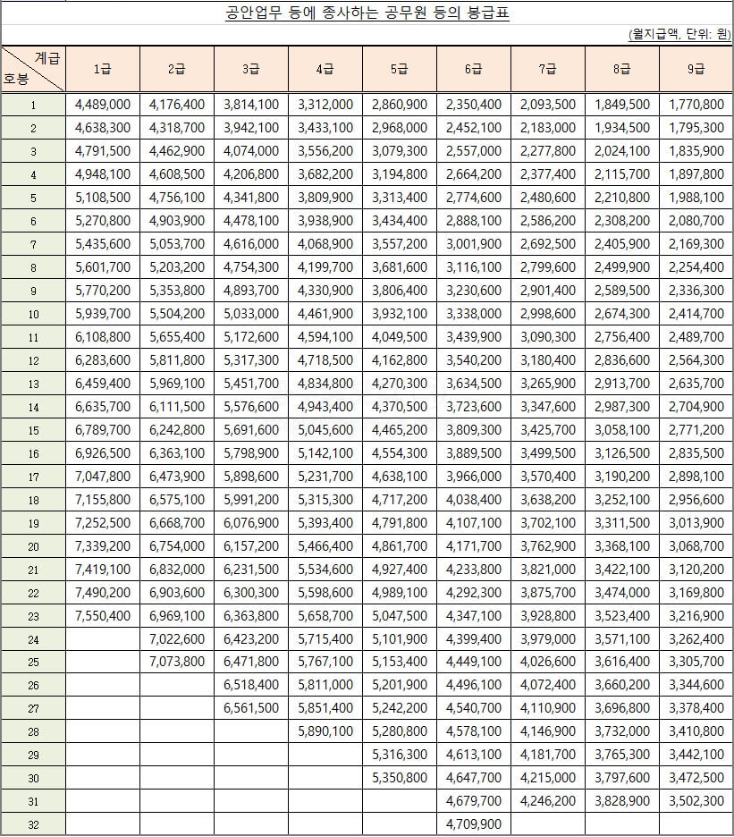 공안직 공무원의 경우 일반직 공무원에 비해 많은 금액을 받습니다.