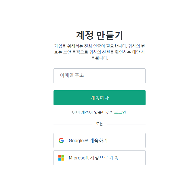 구글로 진행하면 구글 아이디로 먼저 로그인을 하고 다음 화면으로 넘어가는데 휴대폰 인증도 진행하셔야 하기 때문에 자신의 핸드폰 번호를 입력하고 인증번호가 오면 인증을 해주시면 됩니다.
